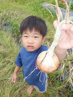 子どもたちからは、「汁が出てきたよ~」「玉ねぎの匂いがするね」など、言葉が聞かれました。また、土の中にいる虫たちもたくさん出てきて、子どもたちは大喜びでした♪